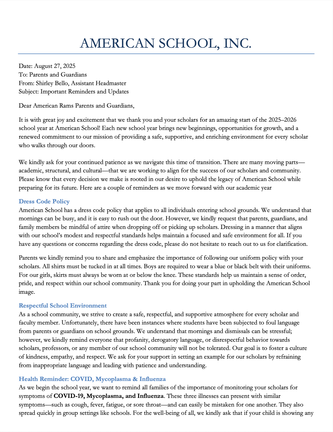 American School is a College Preparatory School that has been preparing students for years, our school has served the city of Bayamon and its neighboring communities with a devoted commitment to advancing the academic and professional success of our students.